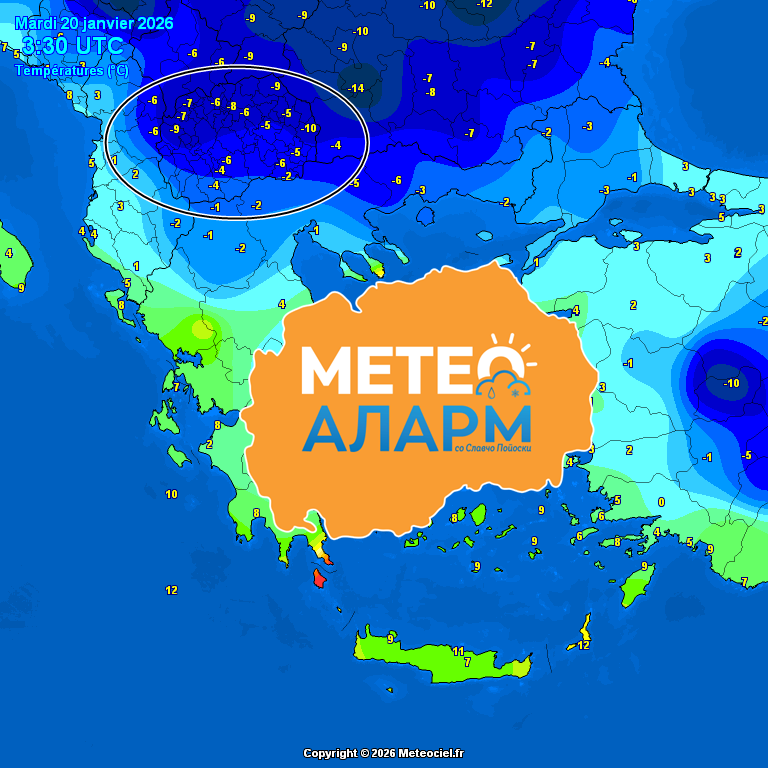 На метеоролошката карта можете да ги видите температурите измерени во Македонија во овие утрински часови. На Скопје Петровец пак се мерат -8 степени а на Скопје Зајчев Рид се мерат -6 степени.