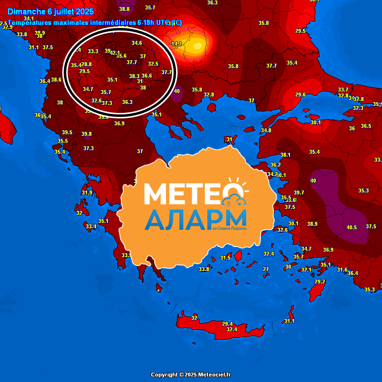 Денес (недела 6 јули) по се изгледа ќе биде најтоплиот ден во јули, а можеби и ова лето 2025 година. Најтопло денес беше во Скопје Петровец со измерена максимална дневна температура од 42 степени.