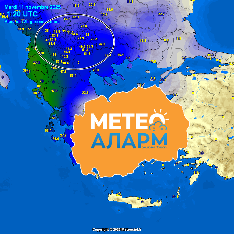 Најмногу дожд во изминатите 72 часа наврна во Охрид и тоа 66 литри дожд на метар квадратен. Исто така многу дожд наврна и во Гевгелија и тоа 62 литри дожд на метар квадратен. Локално значително количество на воден талог во литри на метар квадратен наврна и во другите места и градови во нашата Македонија.