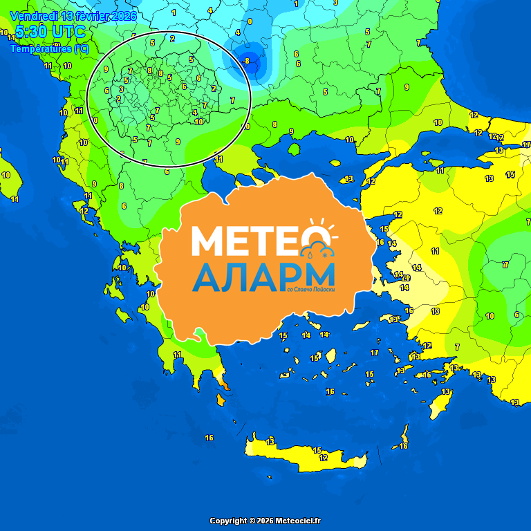 Денешното утро во Македонија ни донесе температури кои насекаде се позитивни односно над нулата  и претежно облачно време а во јужните  и во југозападните предели имаме  и локални врнежи од дожд. на високите планини со надморска височина од над 1400/1500 метри има врнежи од дожд и од снег.