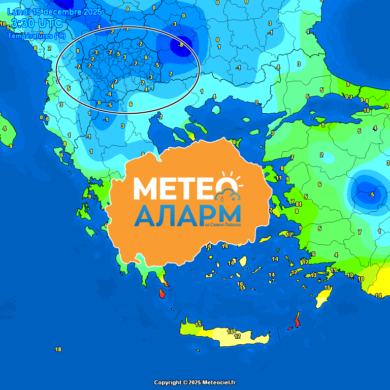 Во овие рани утрински часови во Македонија имаме ведро и ладно време насекаде а во дел од котлините има појава на магла и на зголемена ниска облачност. Претежно е тивко и без некој изразен ветер. Во поголем дел од Македонија имаме минусни температури и појава на мраз и на слана.