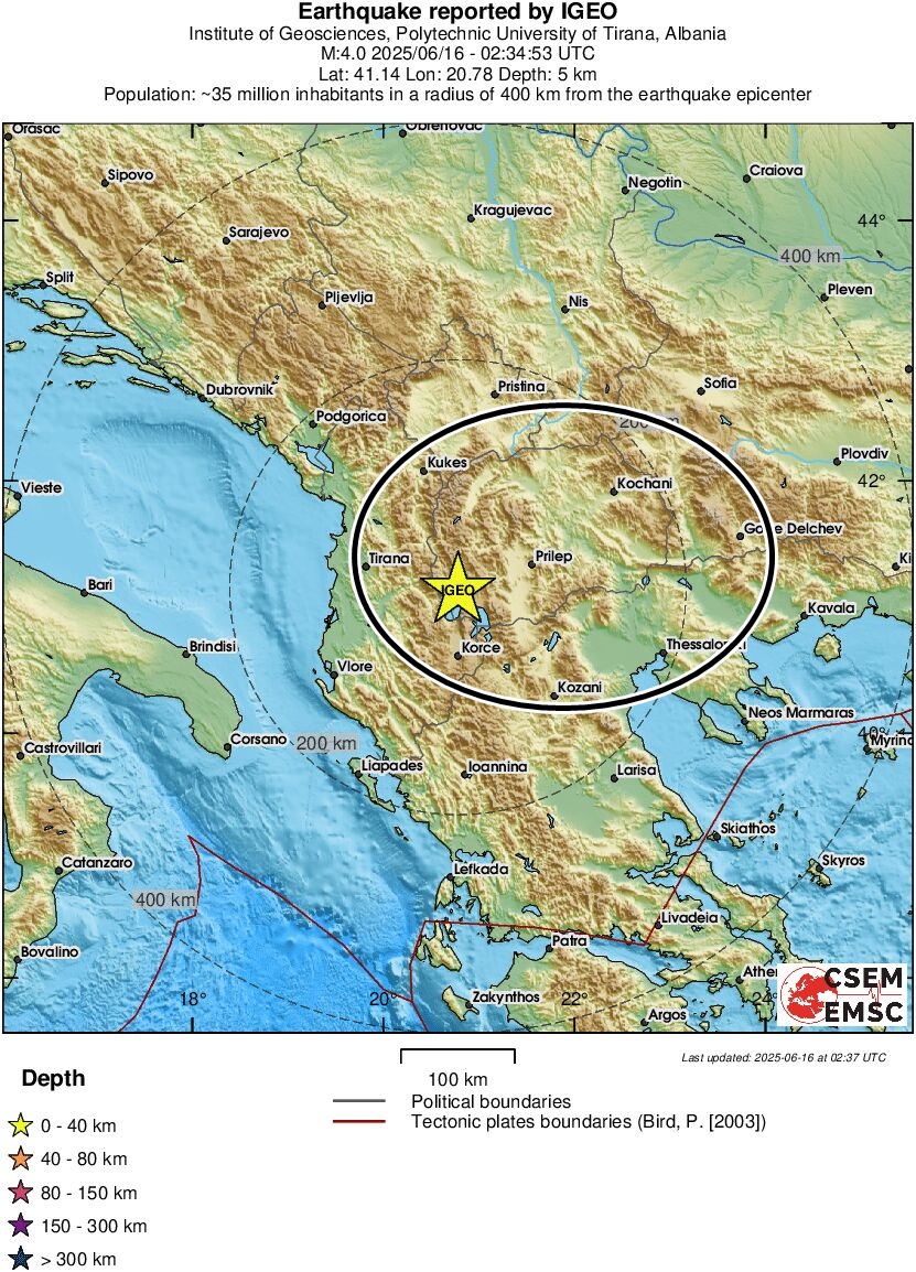 Пред неколку минути, земјотрес со интензитет од речиси 4 степени според Рихтеровата скала е почувствуван во Македонија. Епицентарот на земјотресот се наоѓа во Охридското епицентрално подрачје.